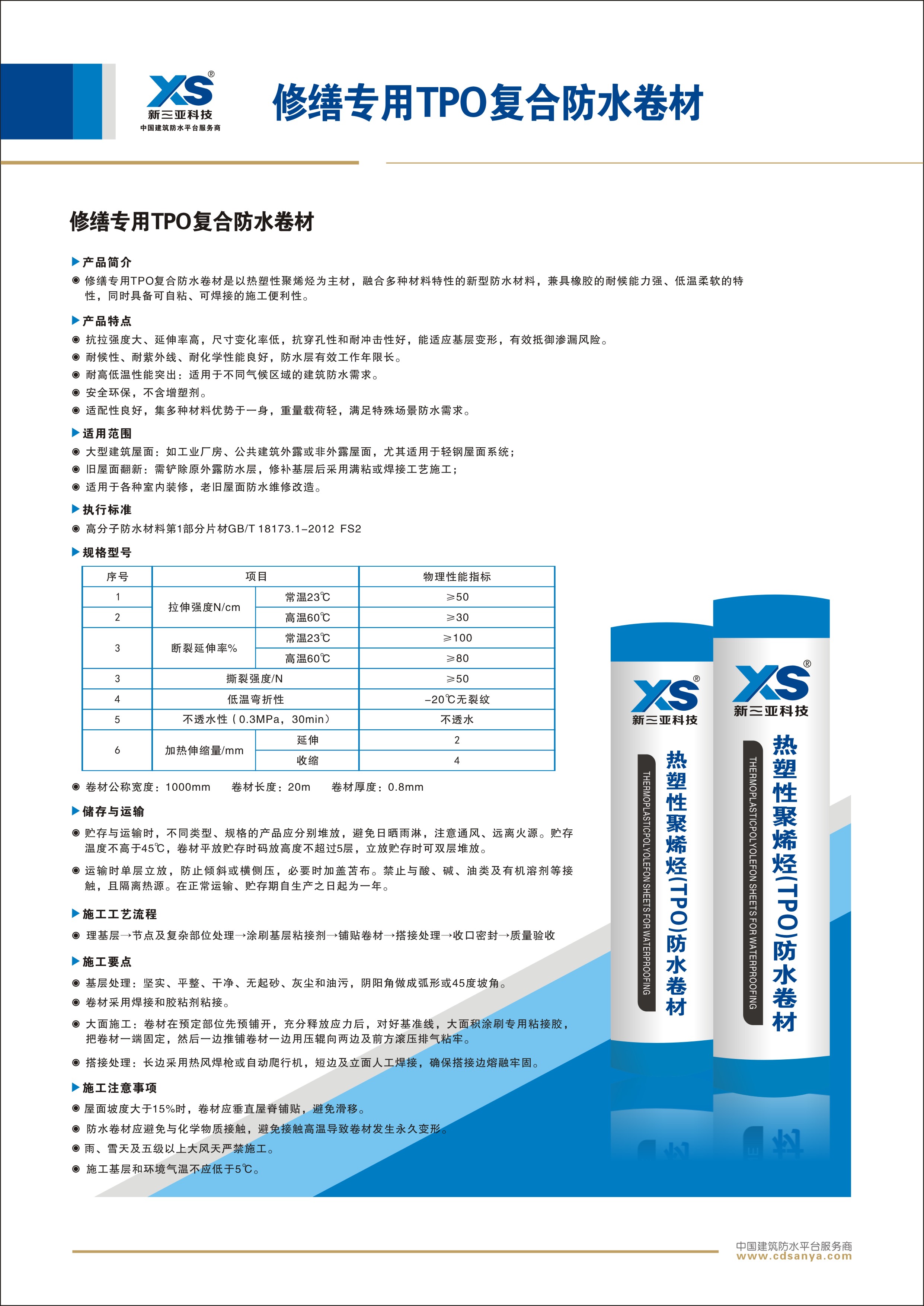 修繕專用TPO復合防水卷材是以熱塑性聚烯烴為主材,融合多種材料特性的新型防水材料,兼具橡膠的耐候能力強、低溫柔軟的特性,同時具備可自粘、可焊接的施工便利性。